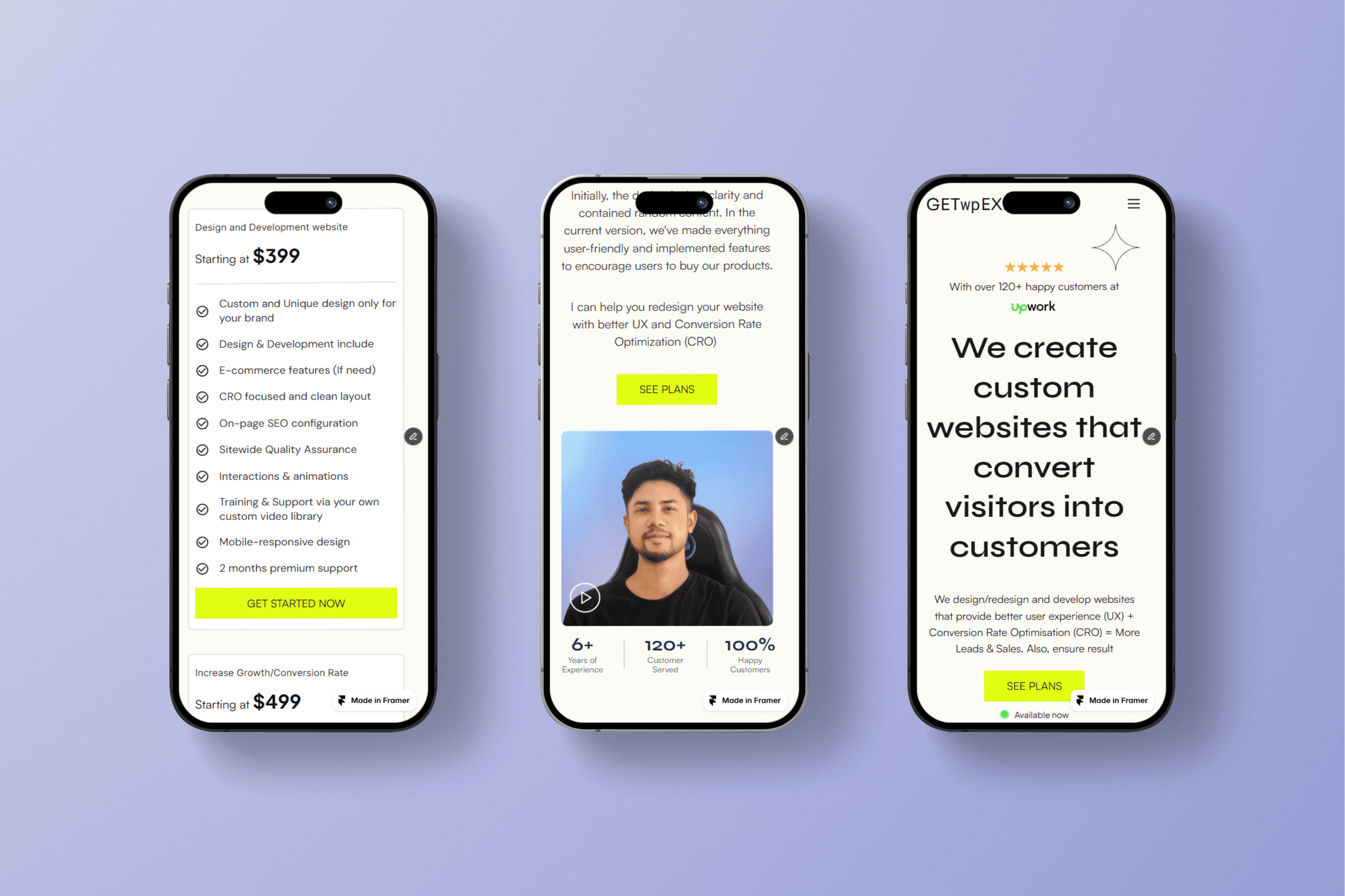 In 2024, I worked with GetWPExpert agency as a Framer developer for around 1.5 years, building responsive and interactive web experiences. I have also collaborated with Soleno agency on recent design projects.
